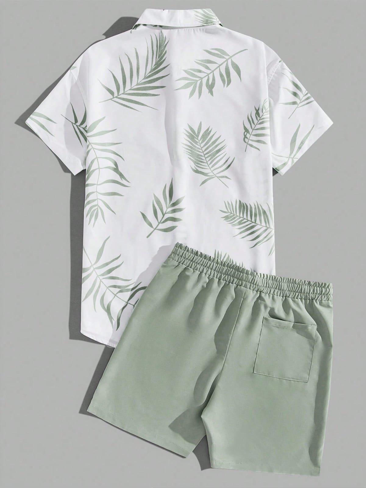 🛒Camisa masculina com impressão 3D de planta tropical, terno de manga curta, camisa de manga curta + bermuda, adequado para passeios casuais na praia nas férias, uso no verão, presente para a família e os amigos