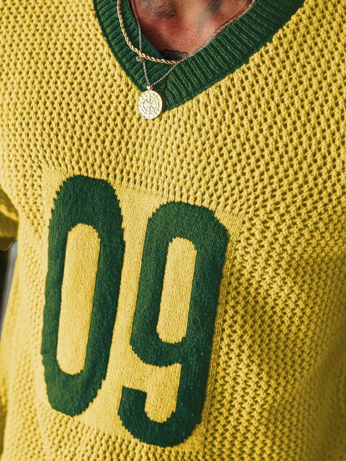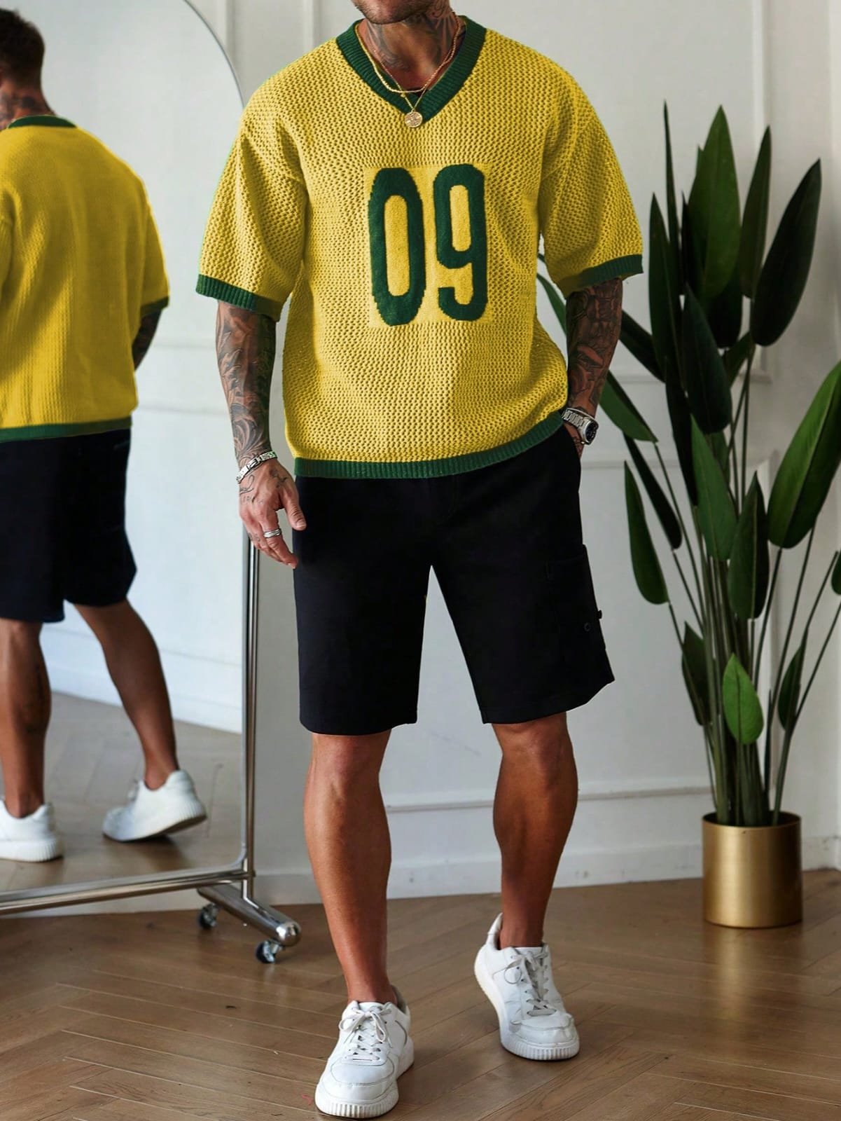 🛒Manfinity Homme Suéter Masculino Estilo de Rua com Decote V Contraste, Estampa de Algarismos, Manga Raglan Tricotada, Top Masculino de Malha 500+ vendido