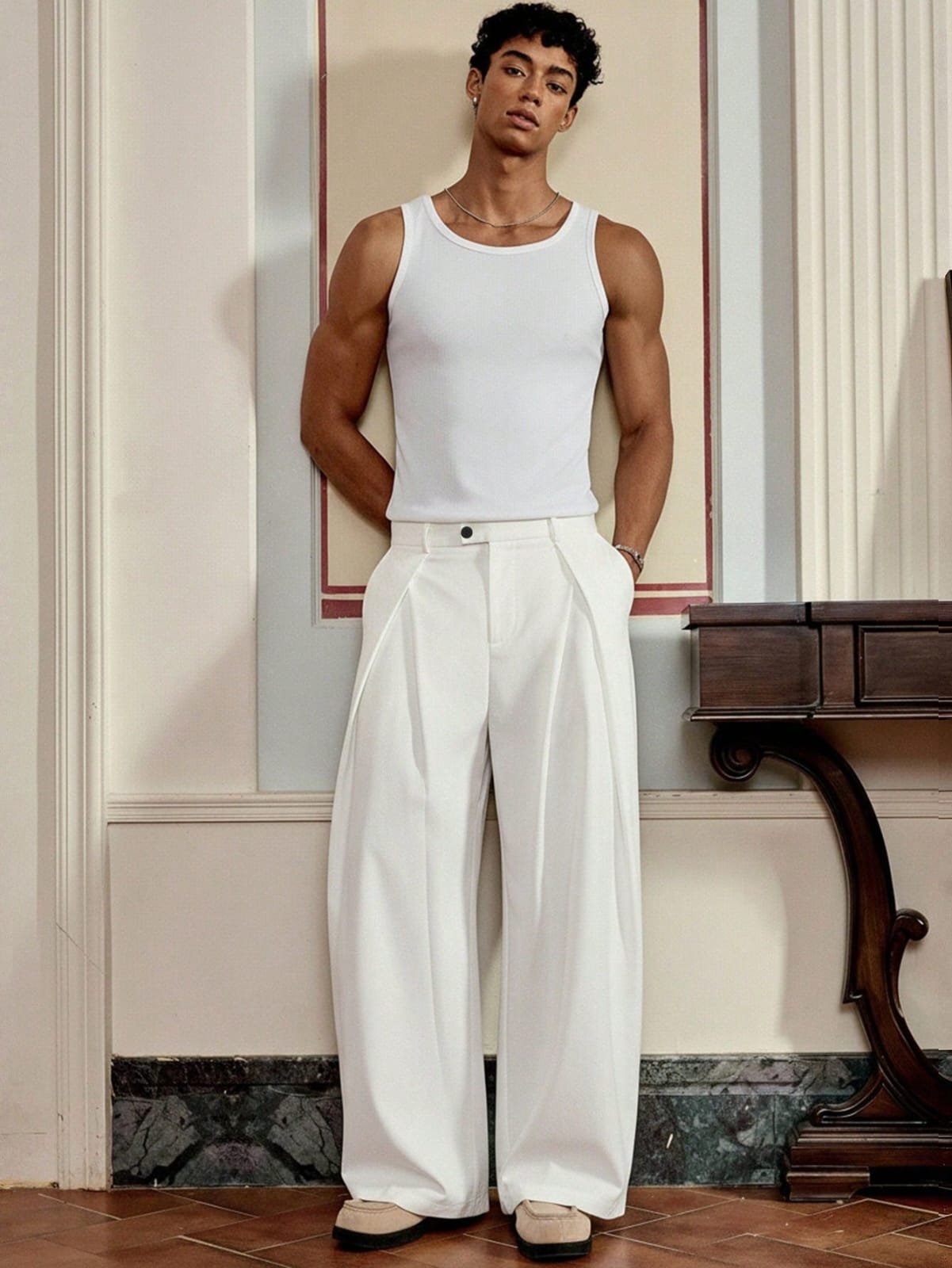 🛒SWAVVY Calça Casual Masculina Reta Solta Tecida de Cor Sólida 50+ vendido