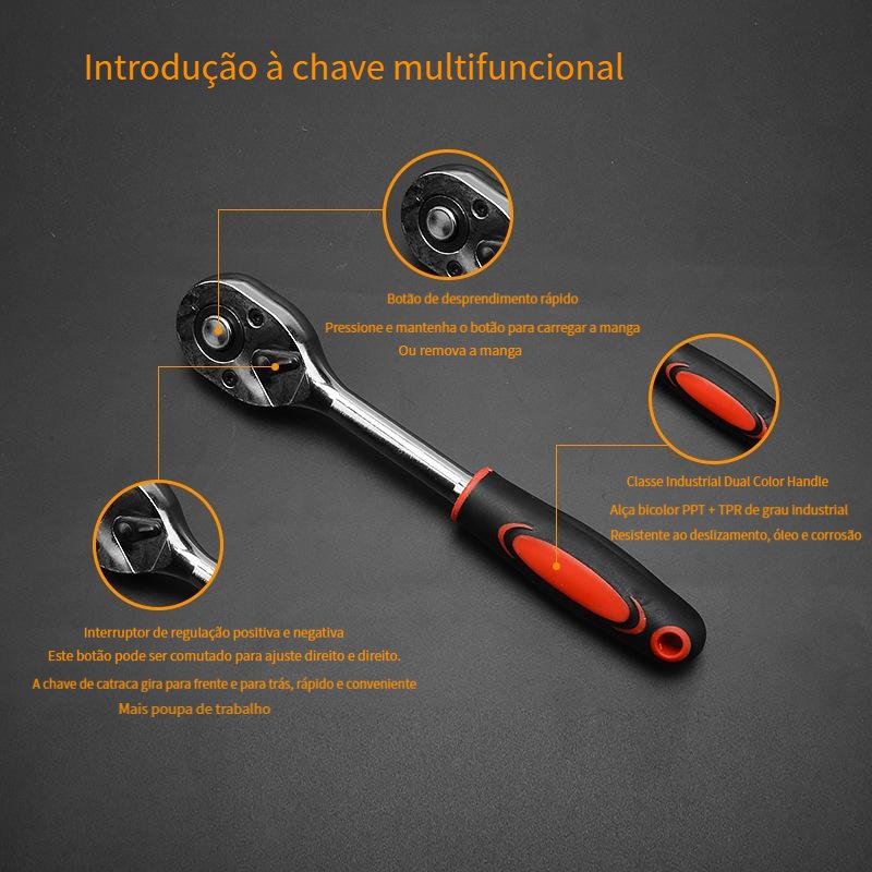 46 Peças Jogo De Chave Catraca Caixa De Ferramentas Completa Reversível Soquetes Maleta