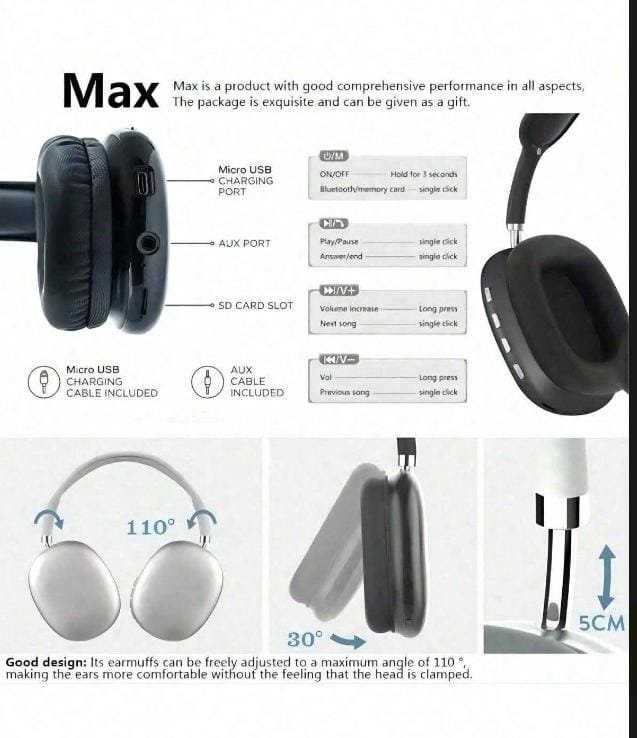 Fone de Ouvido Bluetooth P9 – Design Elegante com Microfone Sem Fio 2.2k+ vendido