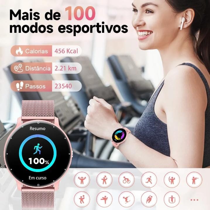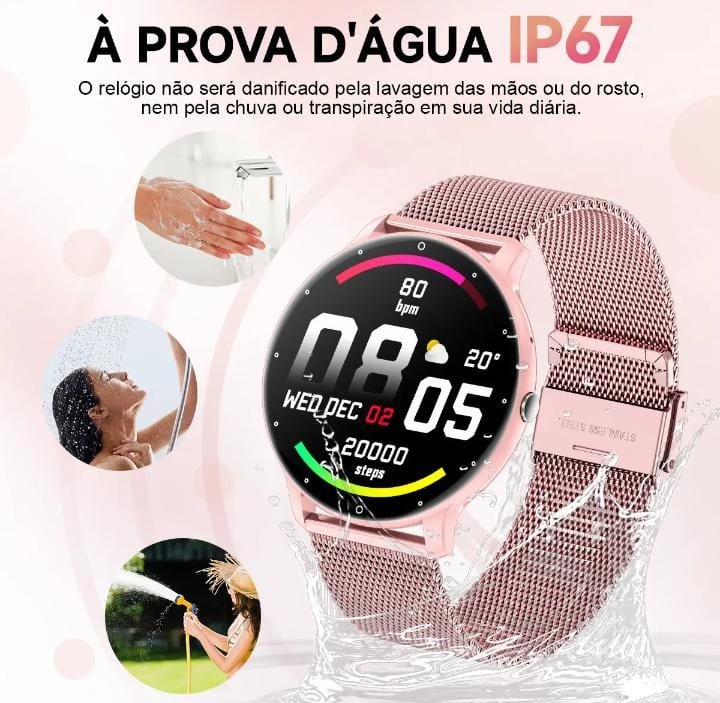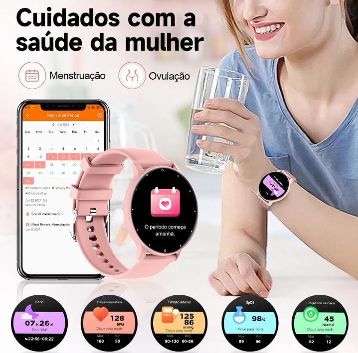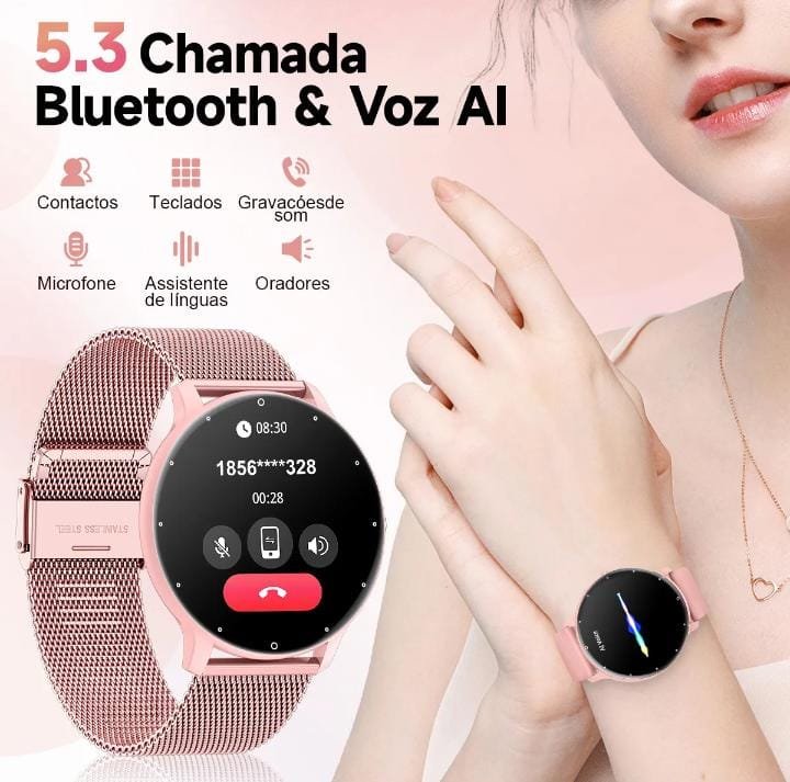 Relógio Inteligente Mulher Smartwatch Esportivo Redondo Rosa